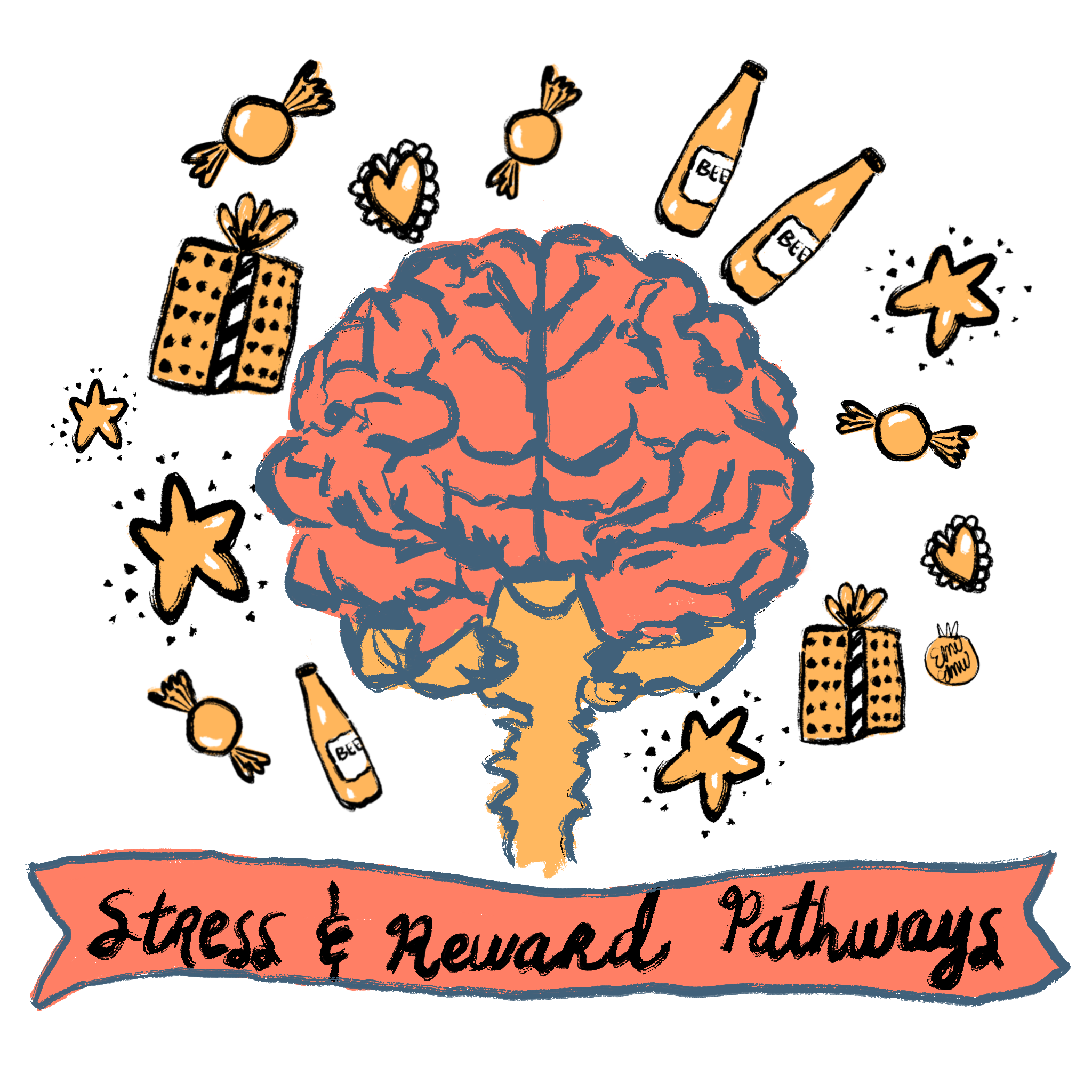 My work focuses on how stress systems in our brains can make rewarding things extra attractive and irresistible. Using a rat model, I am able to activate stress systems in brain regions like the amygdala, specifically corticotropin releasing factor neurons, to understand how these systems intensify motivation and reward seeking. In humans, this might mean that you are more likely to go buy yourself a sweet treat when you have a big stressful deadline coming up, even though you said you were going to eat healthy and save money. It might mean that someone who has been sober for years has a particularly rough day at work and feels the intense pull to stop by the liquor store on the way home. However, stress systems in our brain aren’t just activated by negative stress, but by anything exciting. Maybe your sober friend is celebrating the birth of their nephew… and maybe they are having a hard time staying sober for it.